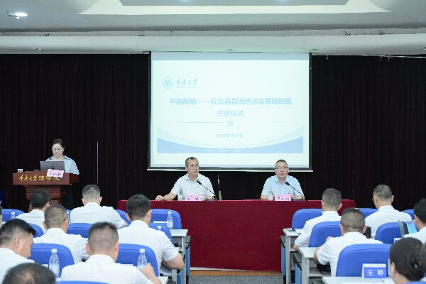 7月21日上午,由丘北县发展和改革局主办,我院承办的“中国船舶——丘北县县域经济发展培训班”顺利开班。重庆大学法学院党委书记蒋研川,丘北县委副书记、县长李黎出席开班仪式,丘北县处级领导、各乡镇和经济项目部门主要领导或分管领导及业务骨干、部分企业负责人、选调生共计54人参加。开班仪式由重庆大学法学院政企培训中心主任李绍静主持。